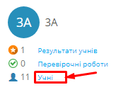 Бали, які учні набирають при самостійному виконанні завдань у розділі «Предмети» можна переглянути в меню «Результати учнів». Результати виконаної перевірочної роботи відображаються в меню «Перевірочні роботи».