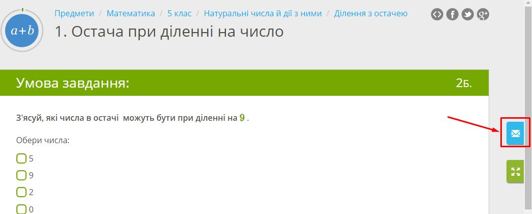 У розділі «Предмети», у кожному завданні чи теорії, на сторінці є конвертик праворуч, через який Ви можете відправити відгук для редакції. Також при створенні перевірочної роботи, під час просмотру завдань є можливість відправити відгук. Найближчим часом розробники опрацюють його та виправлять неточність або повідомлять, що помилки немає. Якщо ви хочете відправити зауваження учню, напишіть йому на пошту, будь ласка, тому що вашого відгуку на сайті він не бачить.
