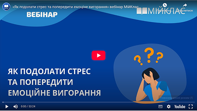 На завершення ми запрошуємо педагогів переглянути вебінар від команди МійКлас. Поговоримо про те, як зберігати натхнення в період емоційної втоми, як відновлюватись після навантаженого дня та як знайти баланс між роботою і життям.