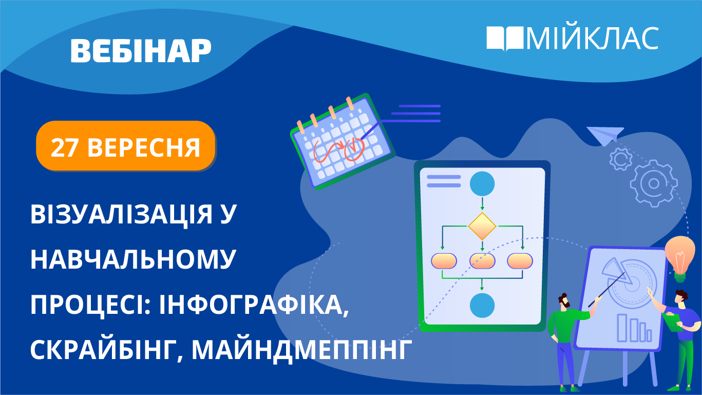 27 вересня о 18.00 запрошуємо педагогічних та науково-педагогічних працівників закладів загальної середньої освіти, психологів, вихователів та батьків відвідати вебінар «Візуалізація у навчальному процесі: інфографіка, скрайбінг, майндмеппінг».