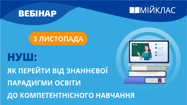 3 листопада о 18.00 запрошуємо педагогічних та науково-педагогічних працівників закладів загальної середньої освіти, психологів, вихователів та батьків відвідати вебінар «НУШ: як перейти від знаннєвої парадигми освіти до компетентнісного навчання».