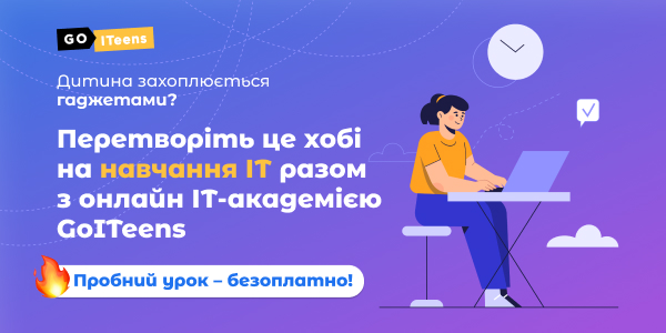 Спробувати навчання в онлайн ІТ-академії GoITeens можна абсолютно безоплатно – переходьте за посиланням та реєструйтеся на безоплатний пробний урок.