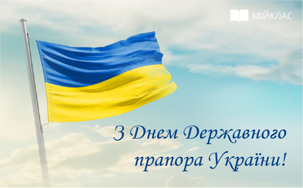 Друзі! Команда МійКлас щиро вітає Вас із Днем Державного прапора України. Кожному і кожній бажаємо чистого мирного блакитного неба над головами. Нехай державний стяг України гордо розвівається над всіма територіями країни, наповнює душу патріотизмом і прагненням до світлого майбутнього. Пам’ятайте, що повага до прапора — це повага до свого народу, його коріння і традицій.