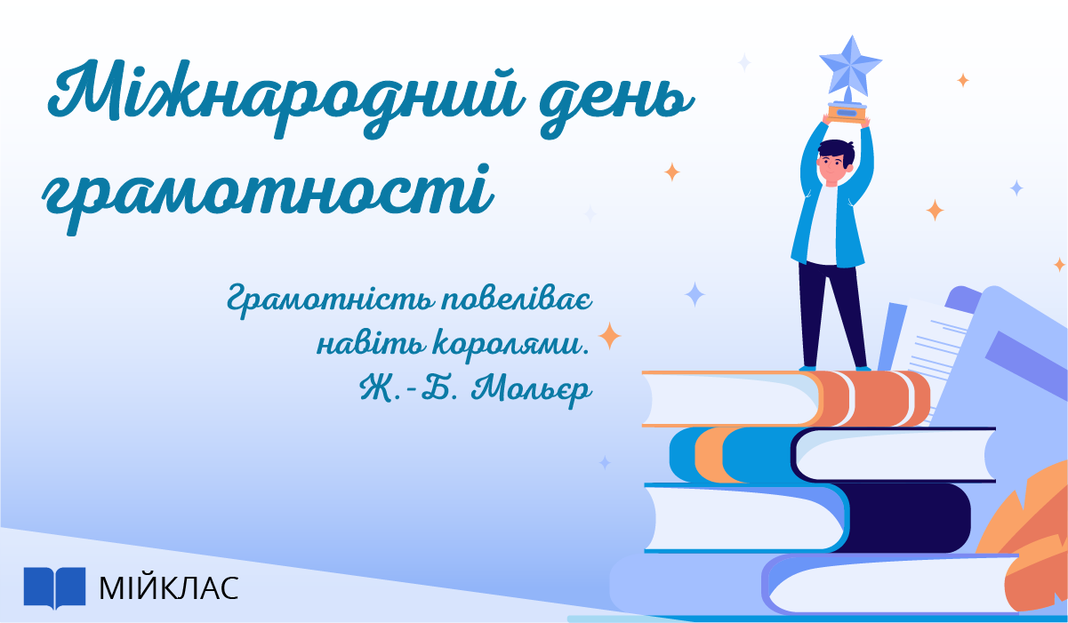 На сьогоднішній день майже чотири мільярди жителів нашої планети вміють читати й писати. Освічених людей із кожним роком стає все більше, але боротьба з неуцтвом залишається надзвичайно складною та масштабною проблемою. Команда МійКлас невпинно працює, щоб саме Ви збагачували свої знання, розширювали кругозір та могли з упевненістю назвати себе грамотною й освіченою людиною.