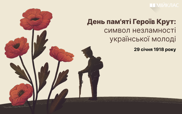 29 січня 1918 року відбулася битва під Крутами - подія, яка стала символом героїзму та самопожертви української молоді в боротьбі за незалежність України. Близько 400 курсантів, студентів та гімназистів стали на захист молодої Української Народної Республіки від наступу більшовицької армії під командуванням Михайла Муравйова.